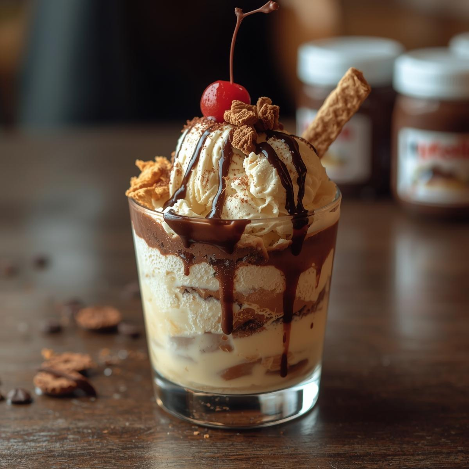 کیک شکلاتی و بستنی وانیلی و نوتلا